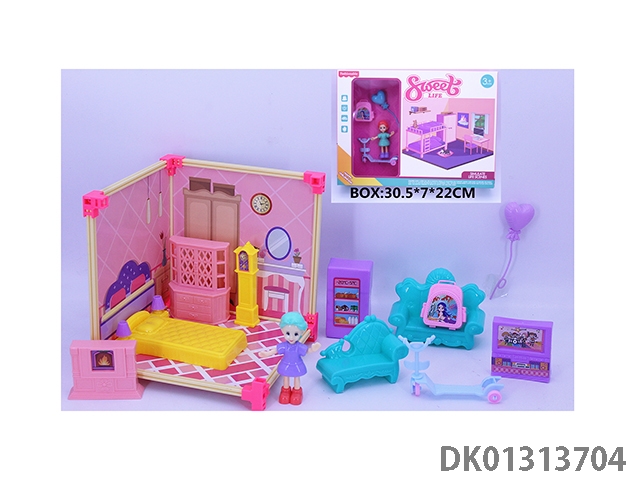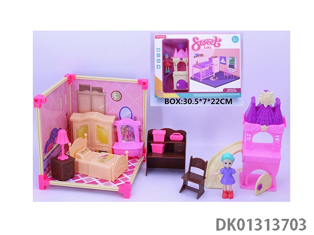 Diy furniture playhouse set - bedroom scene house