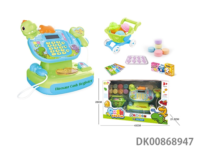 Cute dinosaur cash register with love cart