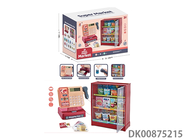 Cash register with refrigerator and food (cash register with calculation, scanning and sound functions)