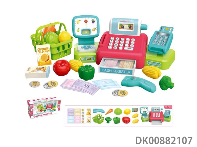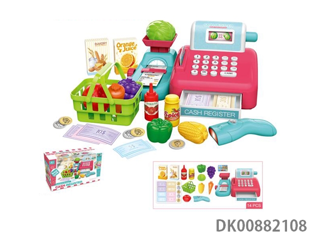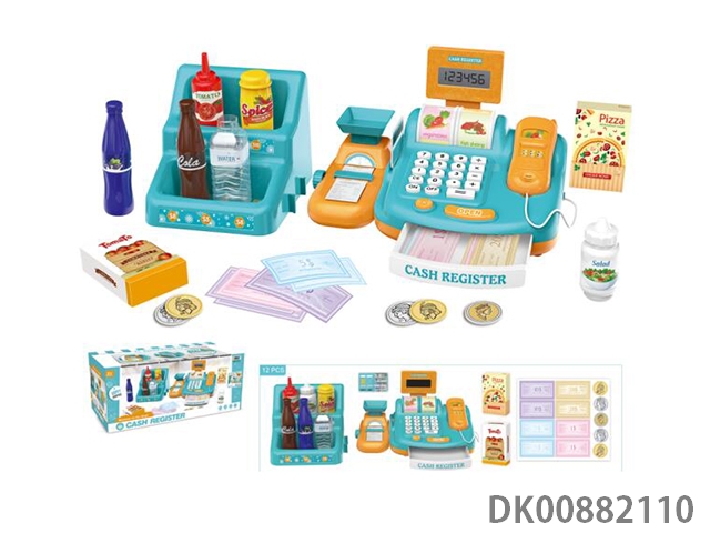 Supermarket cash register with microphone / sound \/ light, calculation function, 2-color mixed package