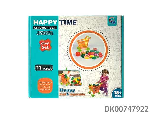 Cut fruits and vegetables and shopping cart