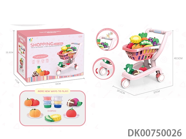 Parent child interactive shopping cart inductive sound light set (including 12 clay accessories) (women’s)