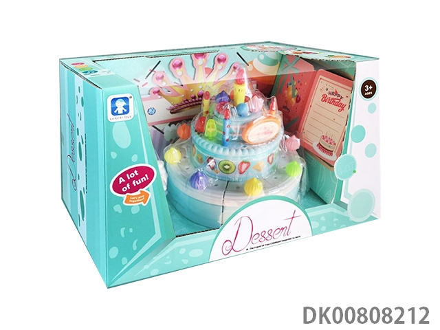With light music, birthday cake