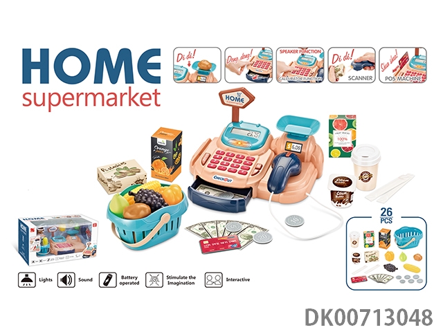 Luxury supermarket combination set and live scanner, cash register, card reader (2 aaa and 2 aa do not pack electricity, 2 ag13 pack electricity), with shopping basket