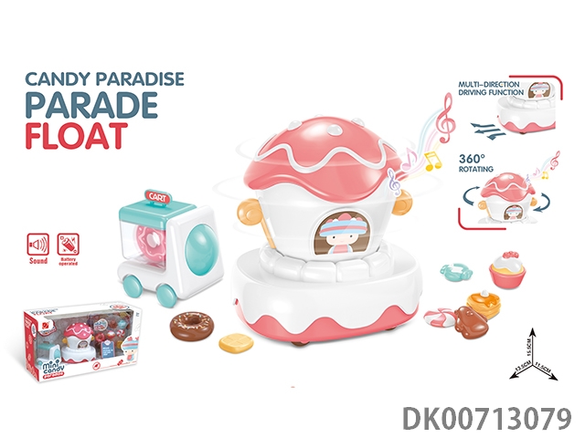 Cake parade float (with music, 360 degree rotation and universal travel function, 3 aa without power pack)