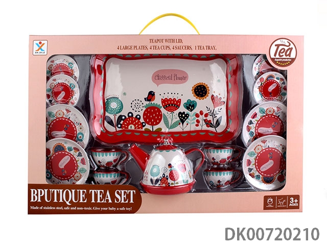 Famous tinplate red classic flower tea set