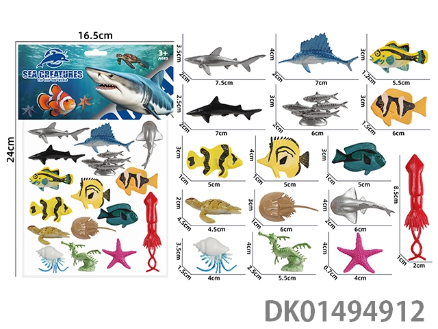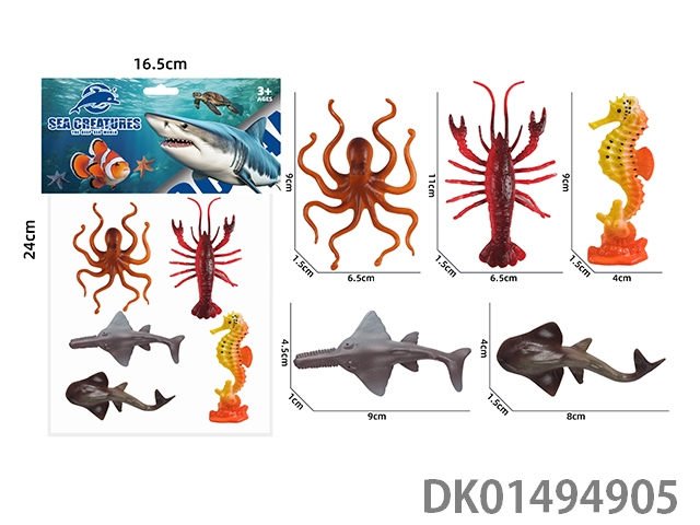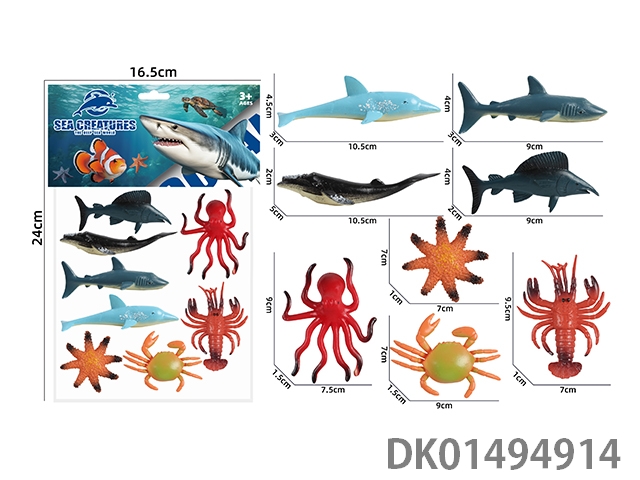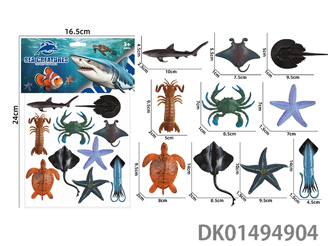 Deep sea animal solid animal model, sea turtle, starfish, shark, squid