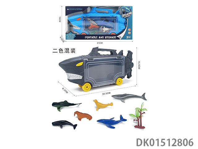 Shark storage cart, shark and horseshoe crab, crab and turtle, and coconut tree