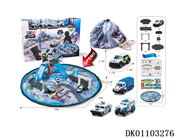 Carpet storage bag with alloy car and track scene toys (police theme)