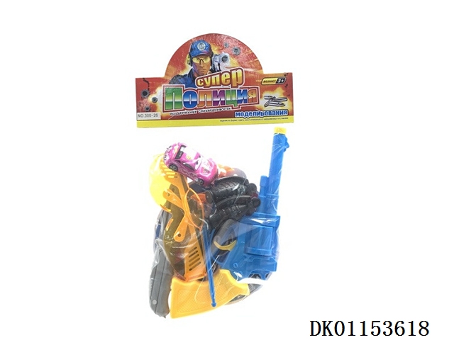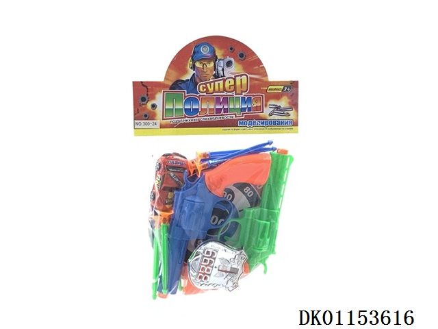 Gun piece police set - three shot revolver needle gun with handcuffs and batons