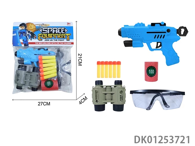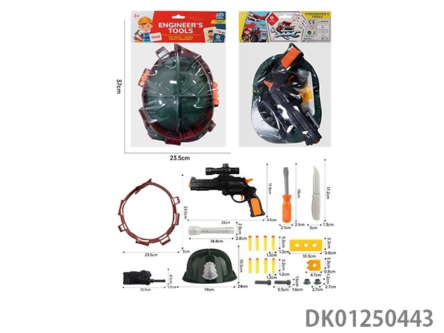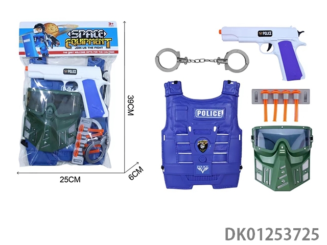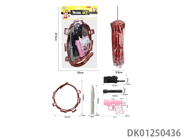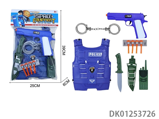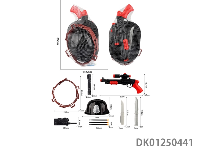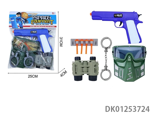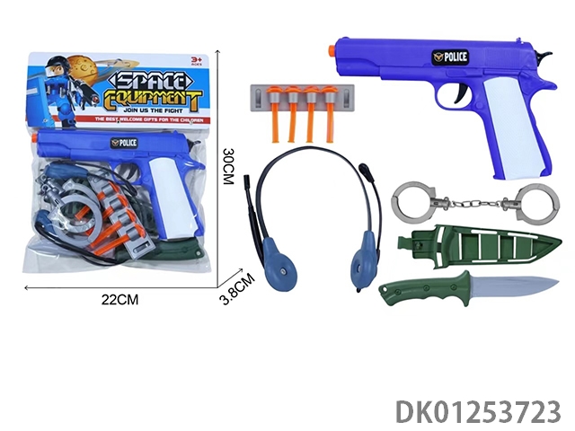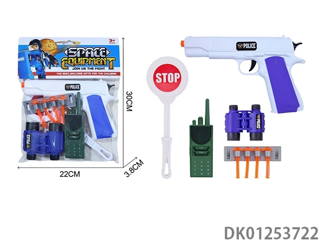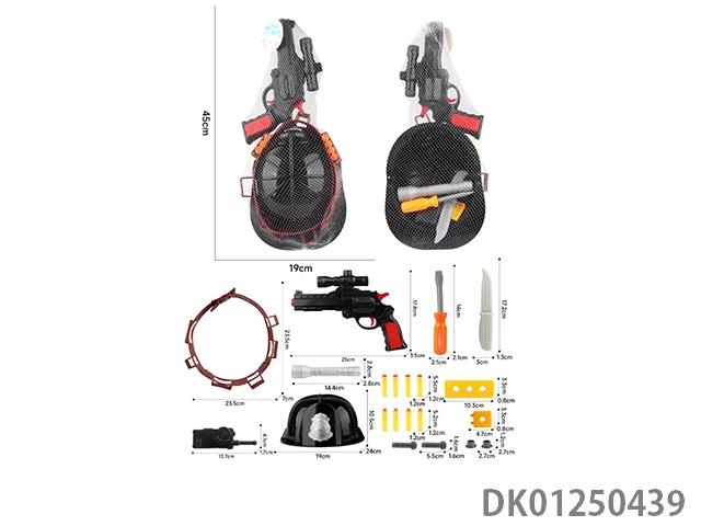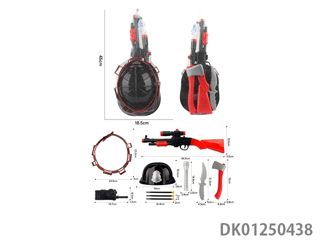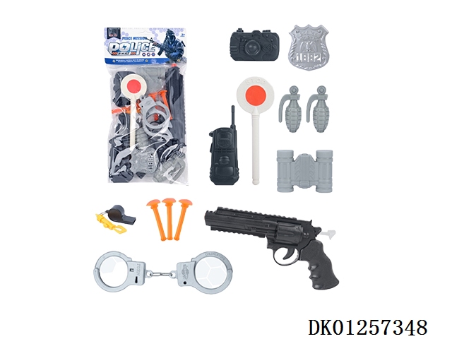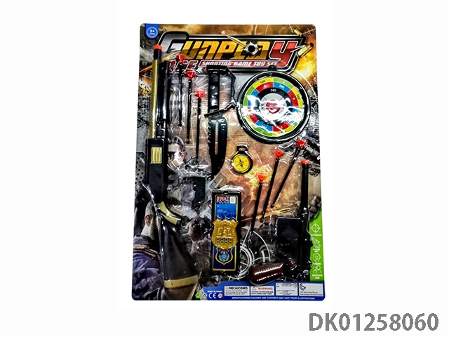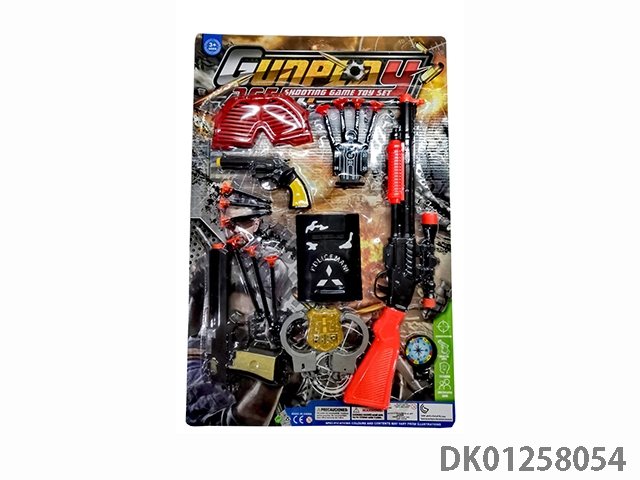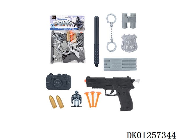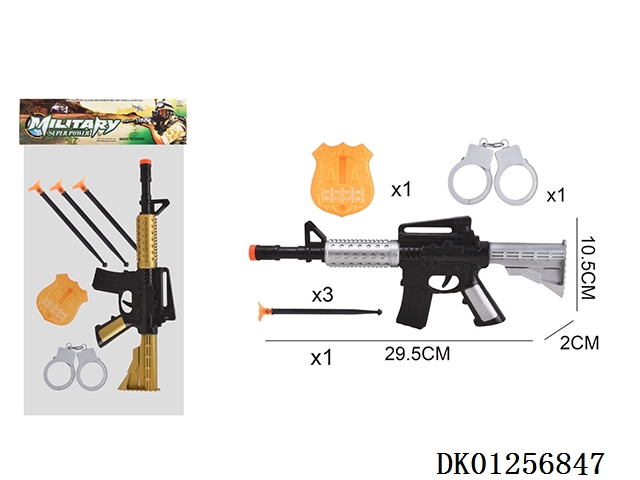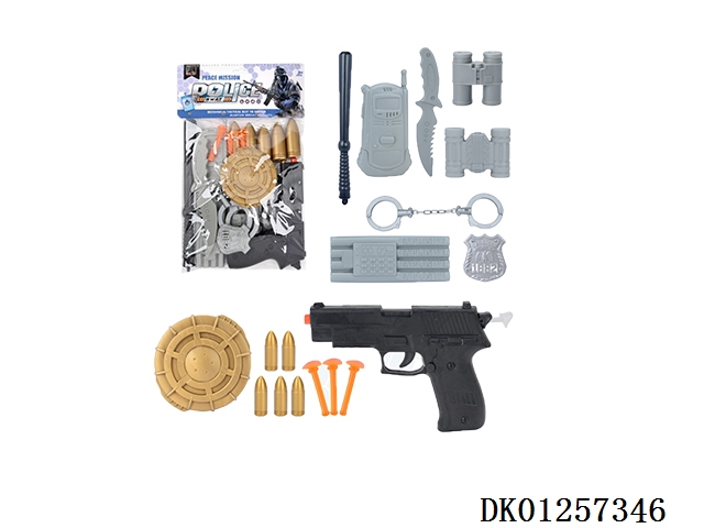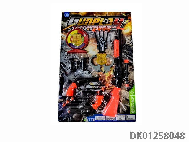 Rifle paired with desert eagle revolver, needle gun, police kit