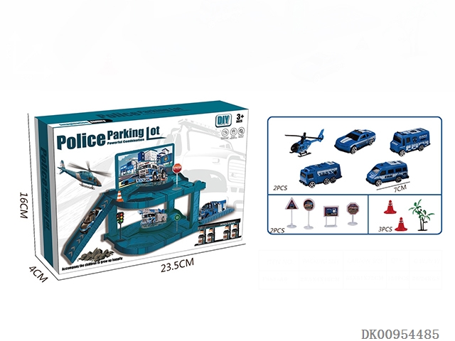 Police theme series 3-storey electric lift track parking lot