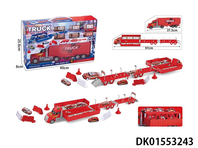 Container truck fire scene storage catapult (equipped with 6 metal rebound trucks, 15 road signs and barriers, and 1 diy sticker)