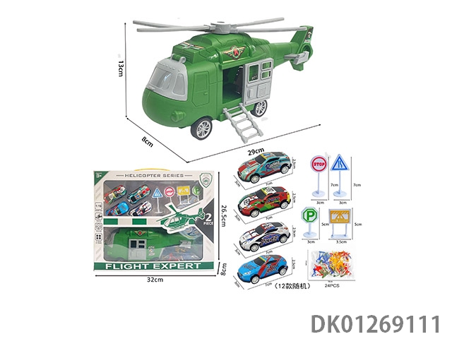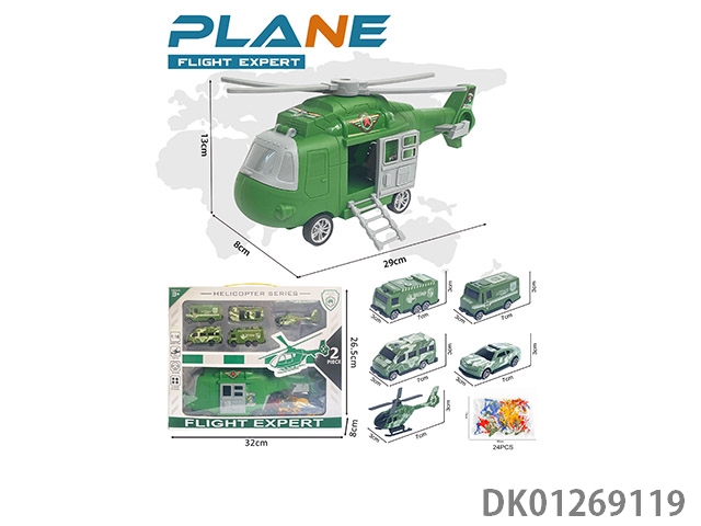 Storage of military scene inertial transport aircraft and 5 helicopter vehicles