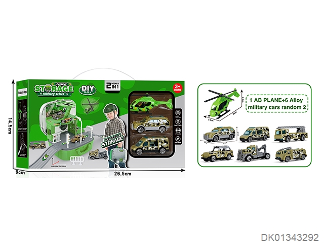 Military parking lot storage box (1ab aircraft, 2 sliding metal cars)