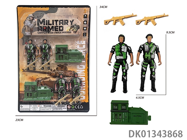 Military set (18 4.5cm tall soldiers equipped with tanks, sandbags, fences, and trees)