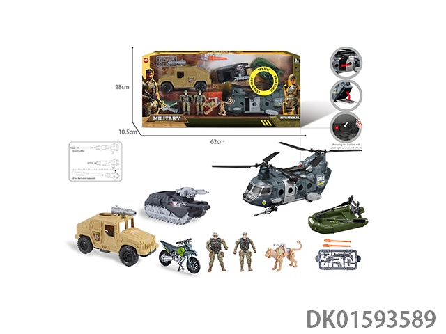 12Cm military personnel equipped with sliding motorcycles, sliding tanks, and trees