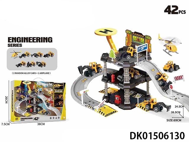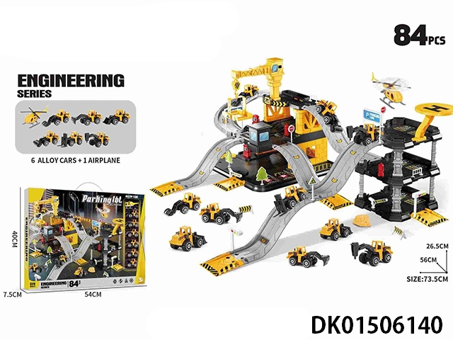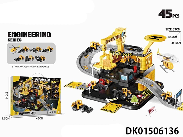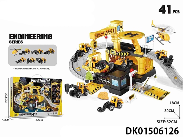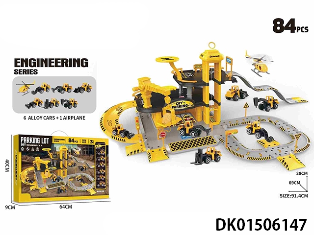 Jiajia airplane storage alloy engineering parking lot (with 1 alloy car) (with 1 set of road signs) (50pcs)