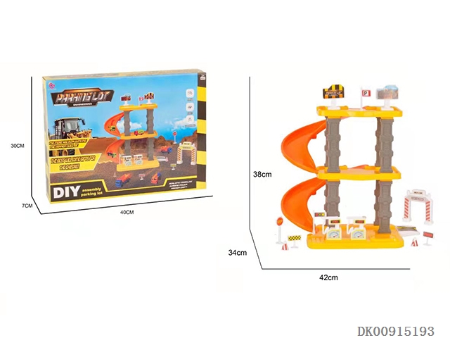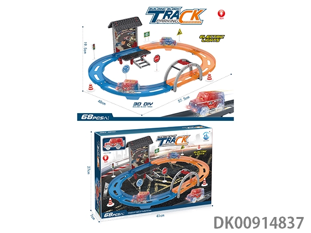 Diy puzzle building block assembly scene electric light racing set parking lot 68pcs