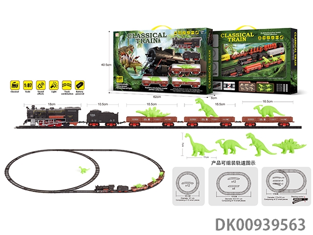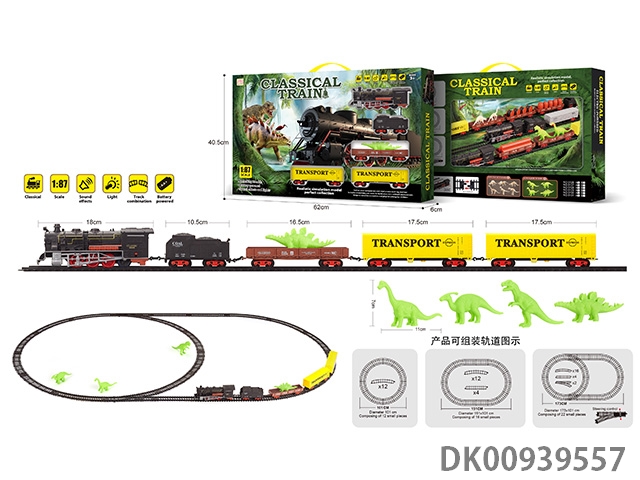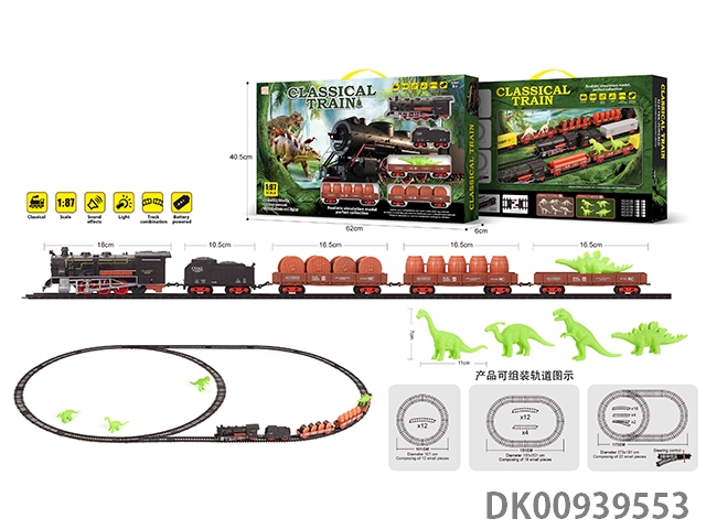 1: 87 Dinosaur retro electric train track light music 35pcs