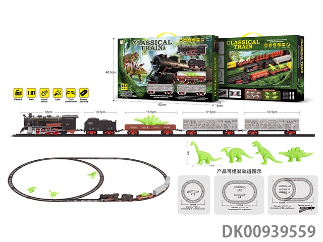 1: 87 Dinosaur retro electric train track light music 21pcs