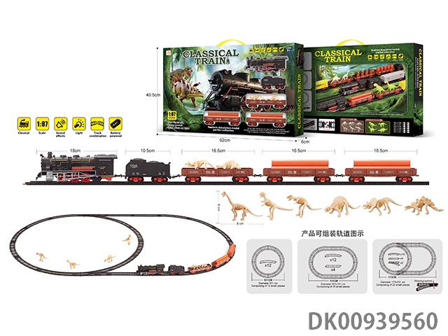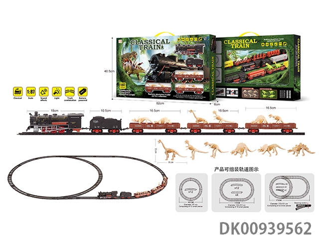 1: 87 Dinosaur bones retro electric train track light music 43pcs