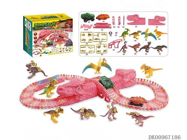 (Pink) 163pcs dinosaur assembled track electric vehicle (130 pieces of track pieces with replaceable car shell for dinosaur electric vehicle and 8 golden armored dinosaur models)