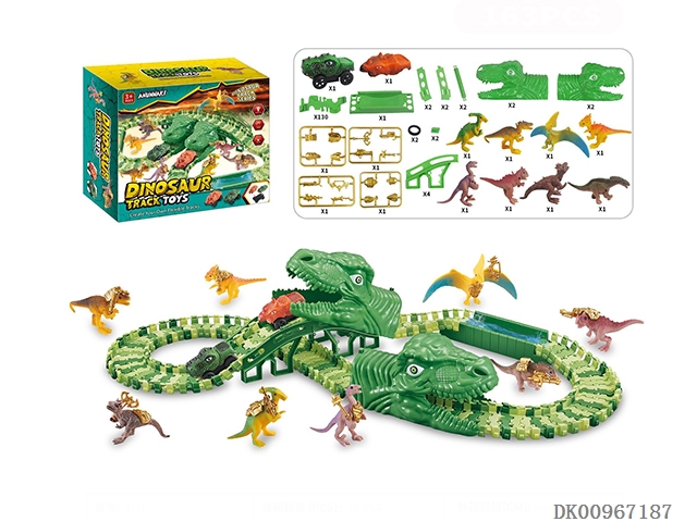 (Off-road color) 163pcs dinosaur assembled rail electric vehicle (130 pieces of replaceable shell rail pieces of dinosaur electric vehicle and 8 golden armored dinosaur models)