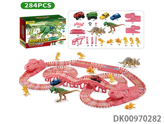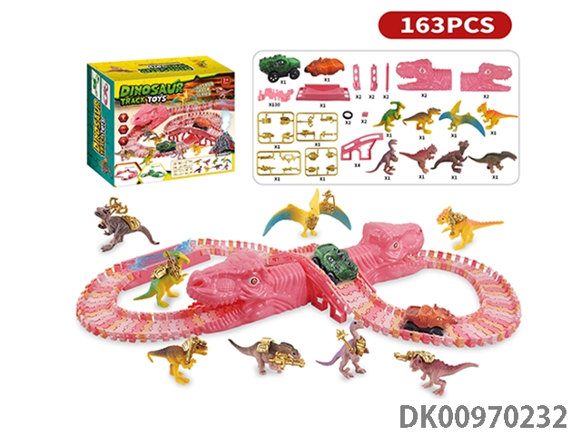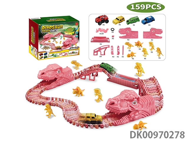 Jurassic world 3: rule - pink dinosaur assembled track electric vehicle (the shell of the electric vehicle can be replaced, and the track piece is 160 pieces). the electric vehicle needs 1 aaa battery, and does not pack electricity