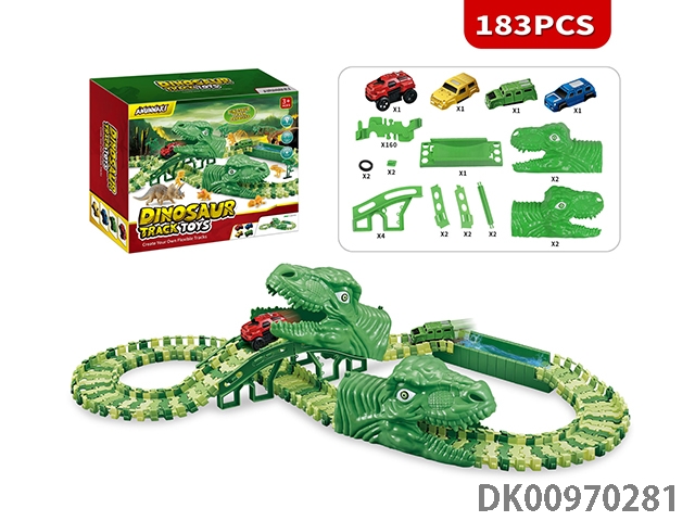 Jurassic world 3: rule - off-road dinosaur assembled track electric vehicle (the electric vehicle can replace the car shell, 130 track pieces, 6 small dragons) the electric vehicle needs 1 aaa battery, and does not pack electricity