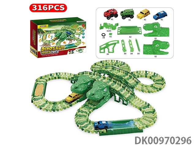 Jurassic world 3: dominate the off-road color dinosaur assembly track electric vehicle (equipped with 2 electric vehicles, replaceable car shell, 250 track pieces, 2 dragons). the electric vehicle needs 1 aaa battery and does not pack electricity