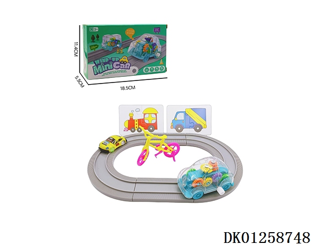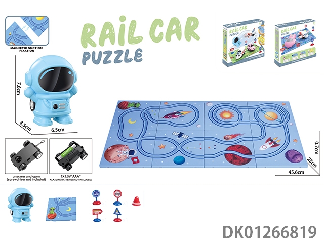 Upchain gear rail vehicle with traffic puzzle
