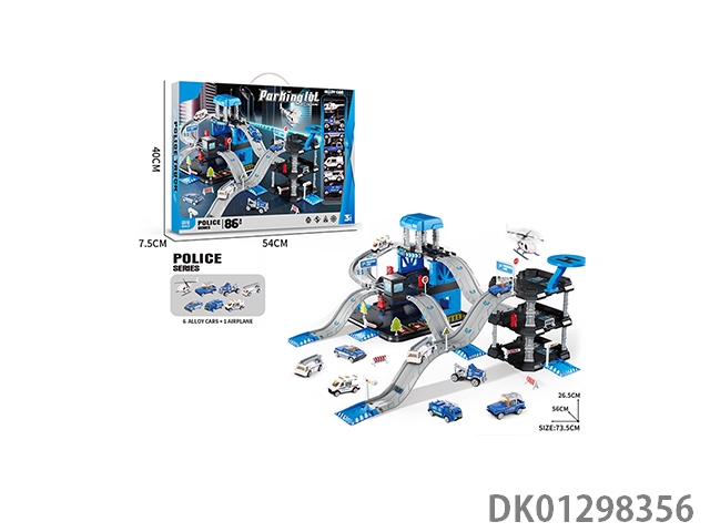 Playing house toy police station track three-level parking set