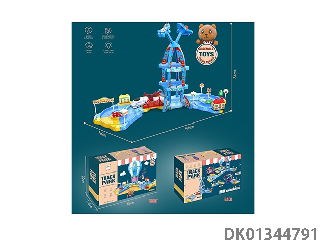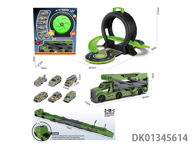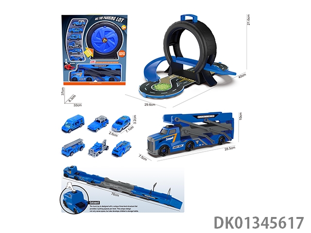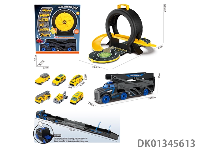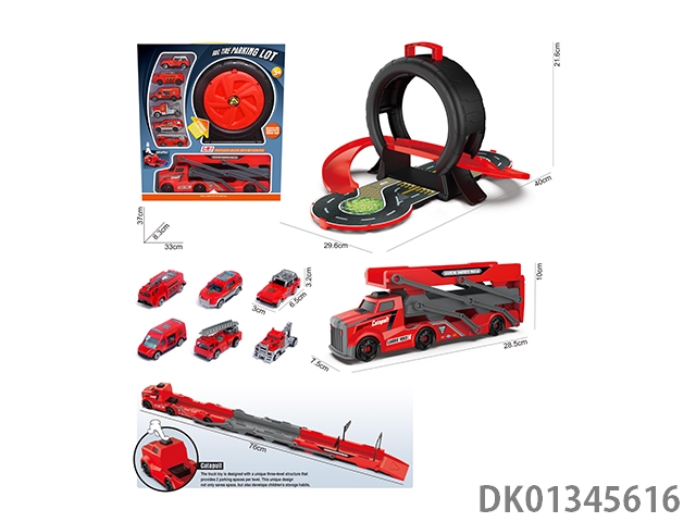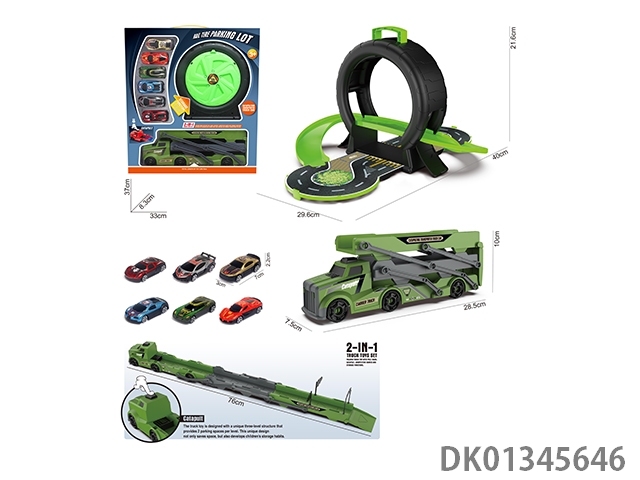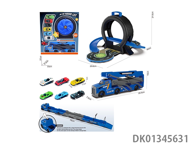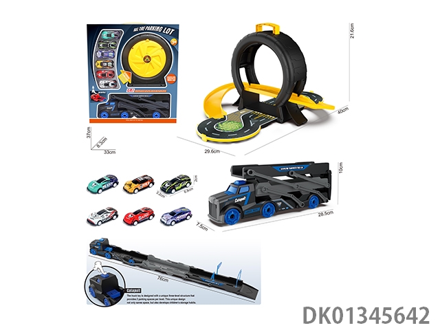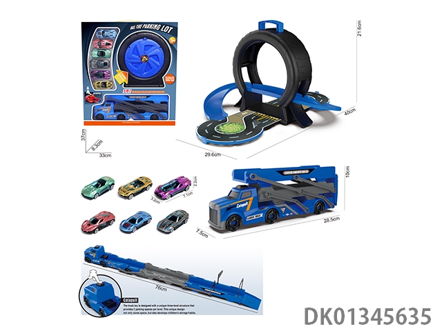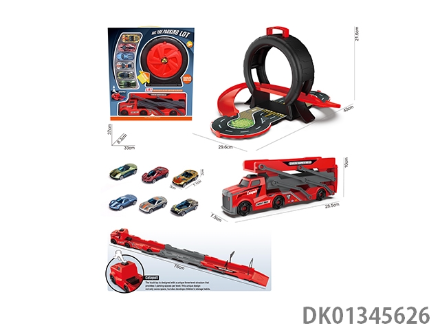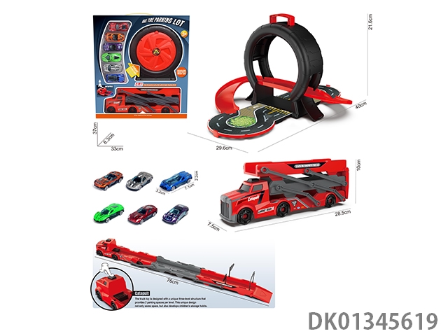 Tire parking lot. six catapult track folding cars with alloy sports cars