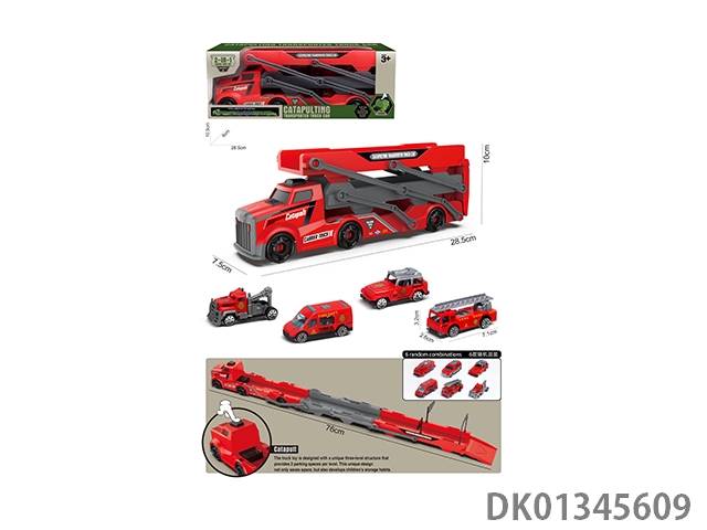 Tire parking lot. six ab fire trucks equipped with catapult track folding car