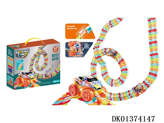 New product: anti gravity diy colorful adhesive disc rail car (electric colorful lights) 97pcs