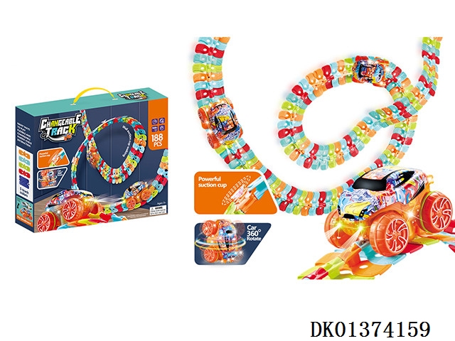 New product: anti gravity diy colorful adhesive disc rail car (electric colorful lights) 188pcs