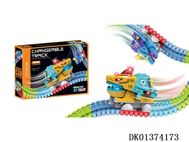 New product: anti gravity dinosaur diy colorful suction disc rail car (electric colorful lights) 288pcs