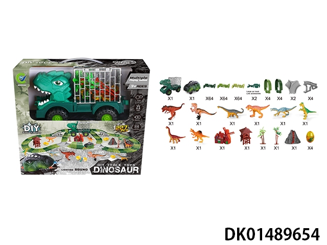 Dinosaur track storage engineering vehicle configuration: 231pcs electric train