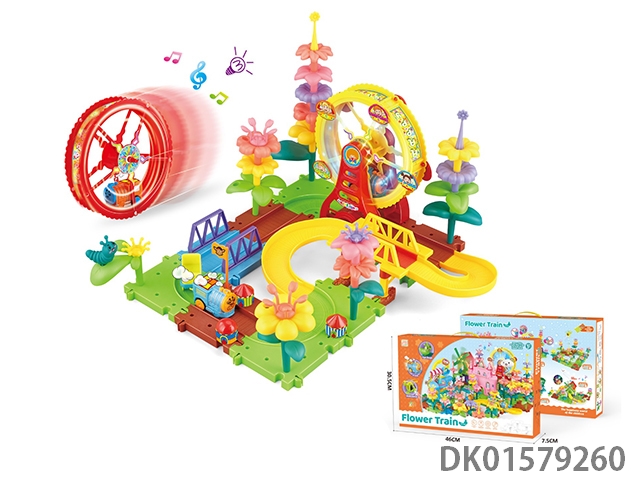 67 Pieces of diy building block toys with flower arrangement intelligence, electric train track, ferris wheel, lighting and music
