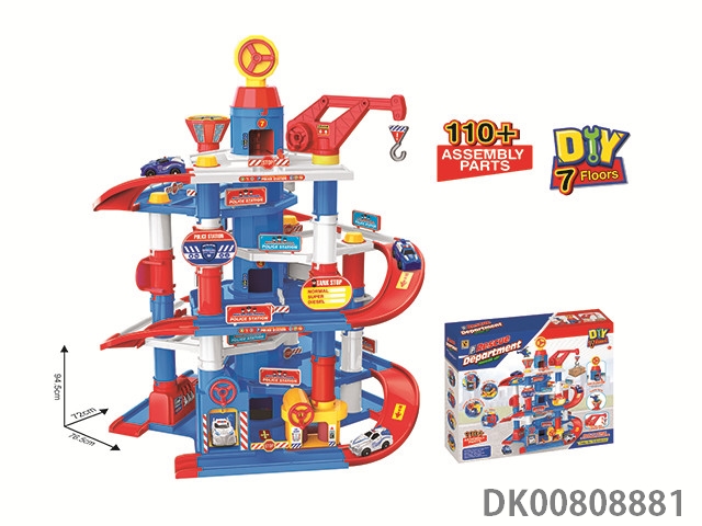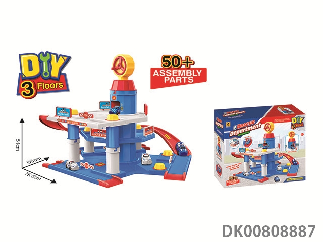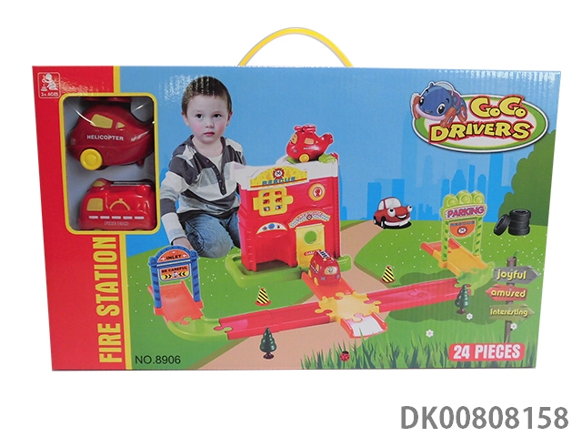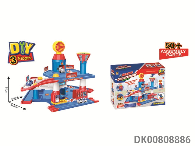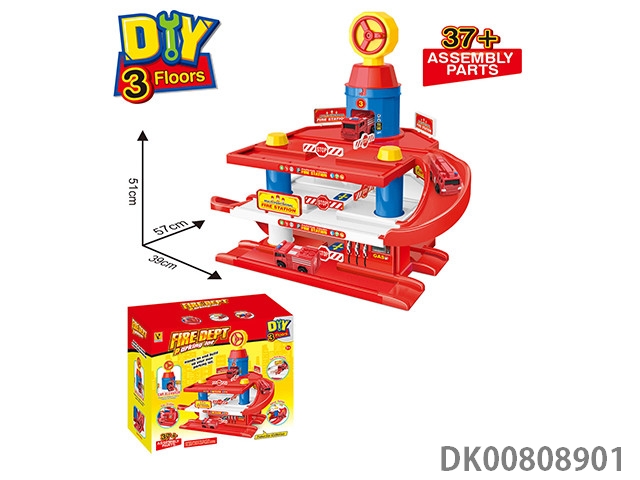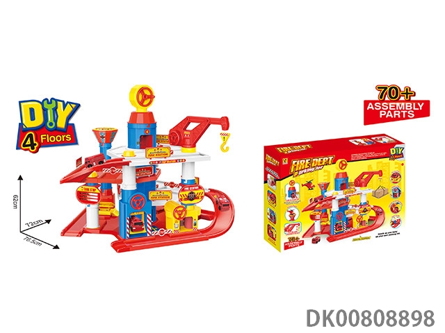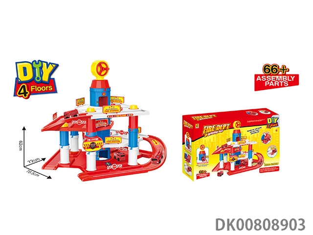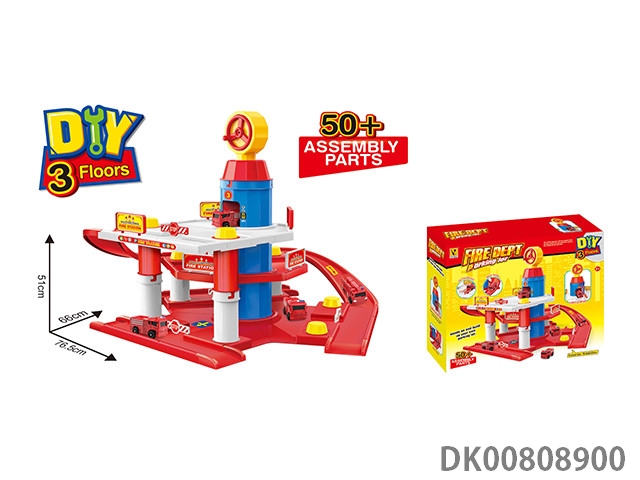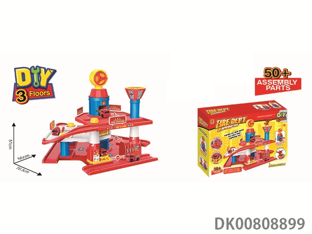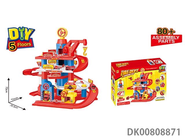 Fire truck parking lot (with 2 plastic cars) 85pcs