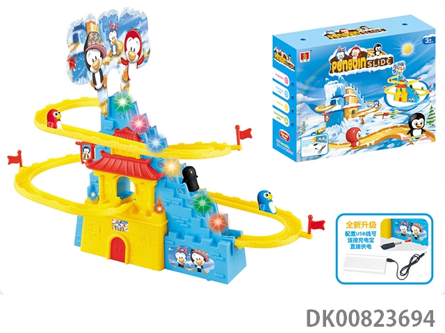 2.4G six way remote control rotary roller coaster spray dinosaur luminous rail car with light 269pcs (no electricity)