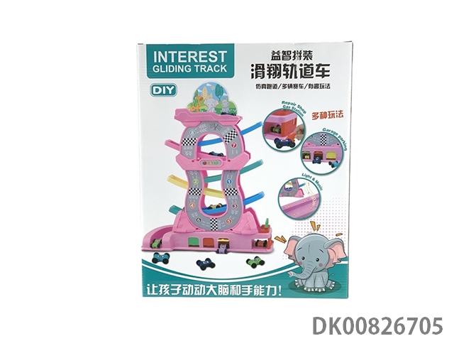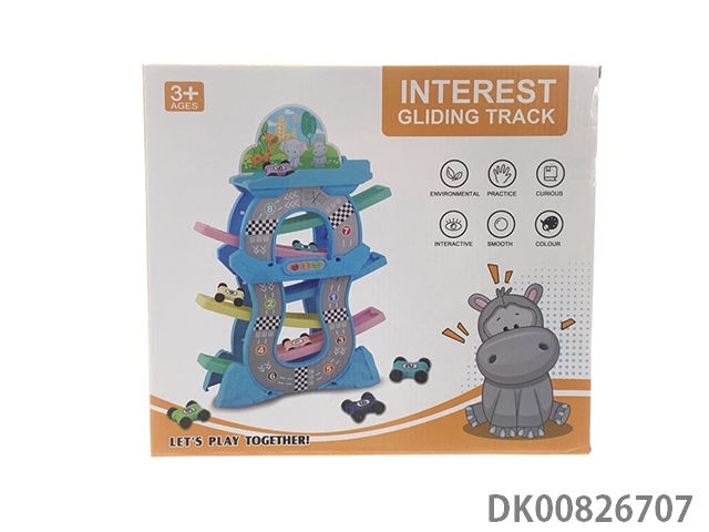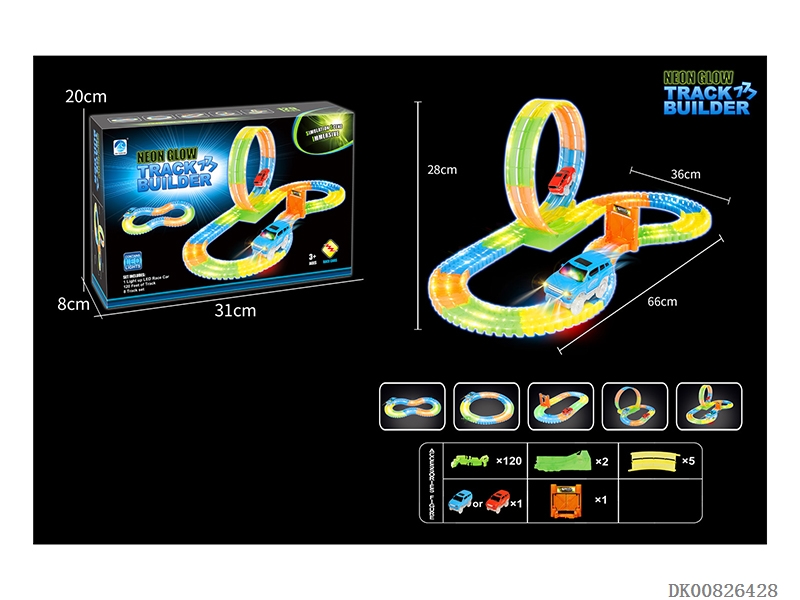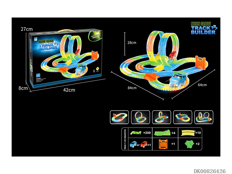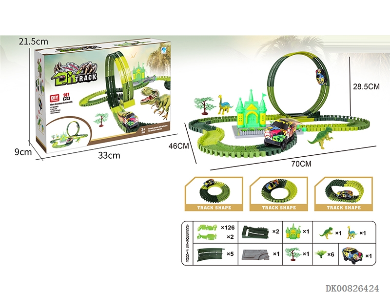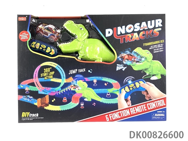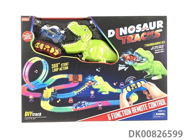 2.4G six way remote control rotary roller coaster spray dinosaur luminous rail car with light 232pcs (no electricity)