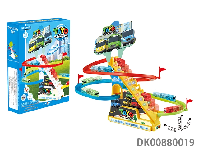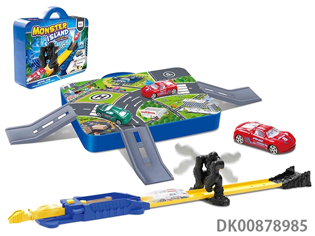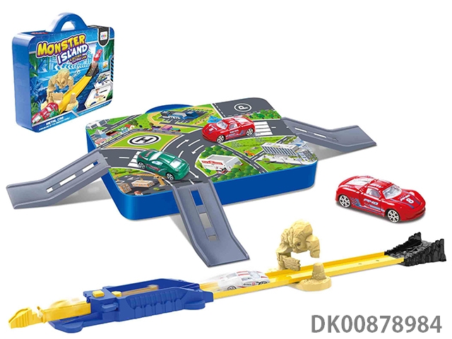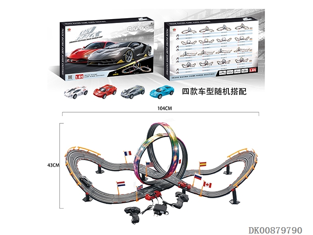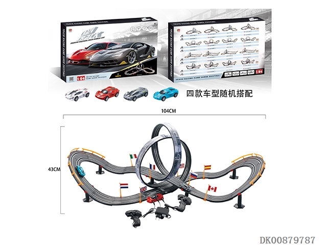 Electric rail car (two mixed sports cars, track length 455cm, with transformer control gun) printed striped track board