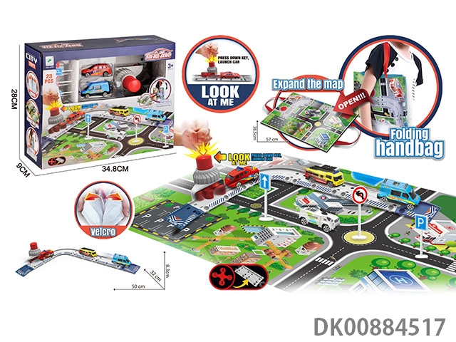 Multifunctional portable map storage bag city ejection track (alloy car) (equipped with 2 alloy cars, 1 road sign, 1 map, 1 handbag, 23pcs)