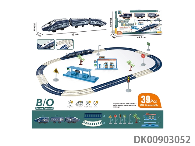 191Pcs of train tracks (2 trees, 3 firewood, 1 house, 1 train, 1 firewood carriage, 1 coal carriage, 1 control room, 12 road signs, 144 wood rails, 16 curved rails, 8 straight rails and 1 water bottle)