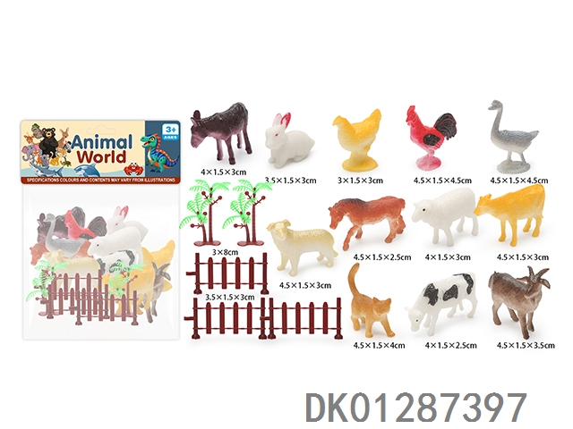 12 Pieces of real cartoon poultry animals
