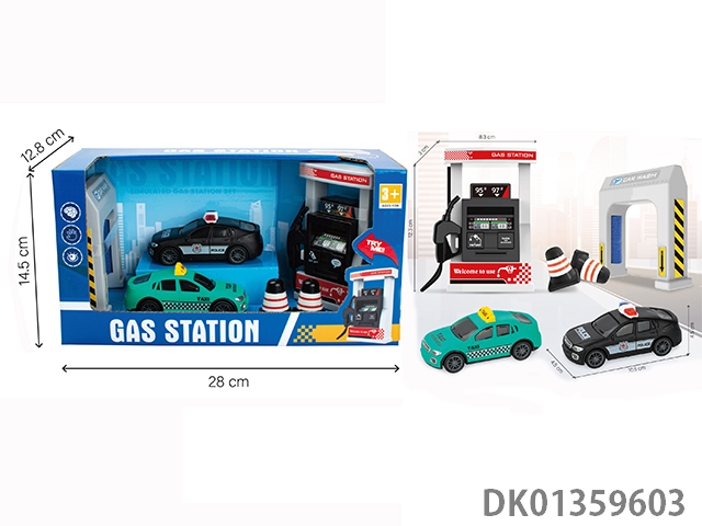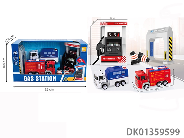 Gas station with ic sound (3 ag13), police car, fire department, 2 cars, set, rebound car, boy playing house toy