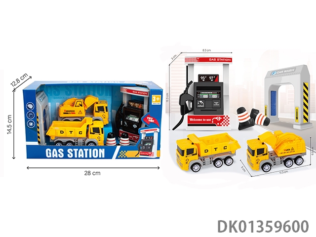 Gas station with ic sound (3 ag13), 2 construction vehicles, set of rebound cars, boys playing house toys