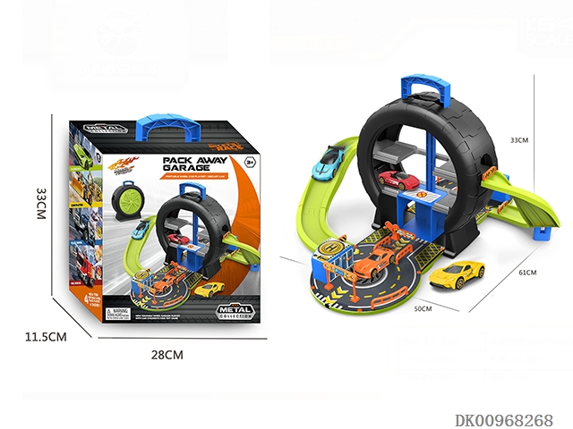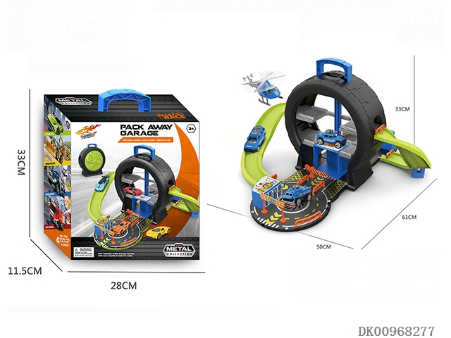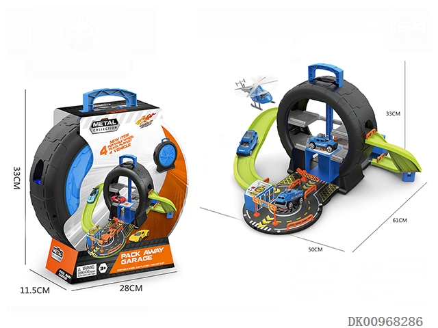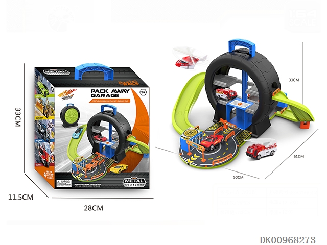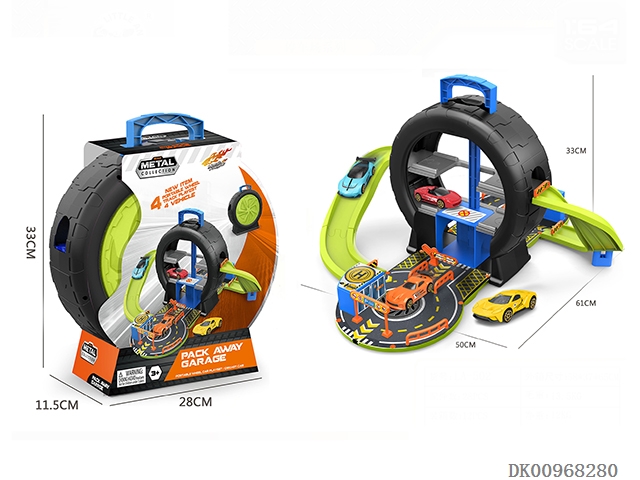 Fire tire parking lot color box packaging (with 4 alloy cars)